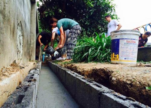 In Thailand, they live off of "Thai-time"-which means going with the flow. Most classrooms take place on the bare floors outside. No rooms, no desks, no pens... Just floor space. For building and repairing their educational facilities, we've utilized sand and hoes to make cement by hand. A task that's taken weeks to do would take hours using machines but this is how they live- happily going with the flow.
